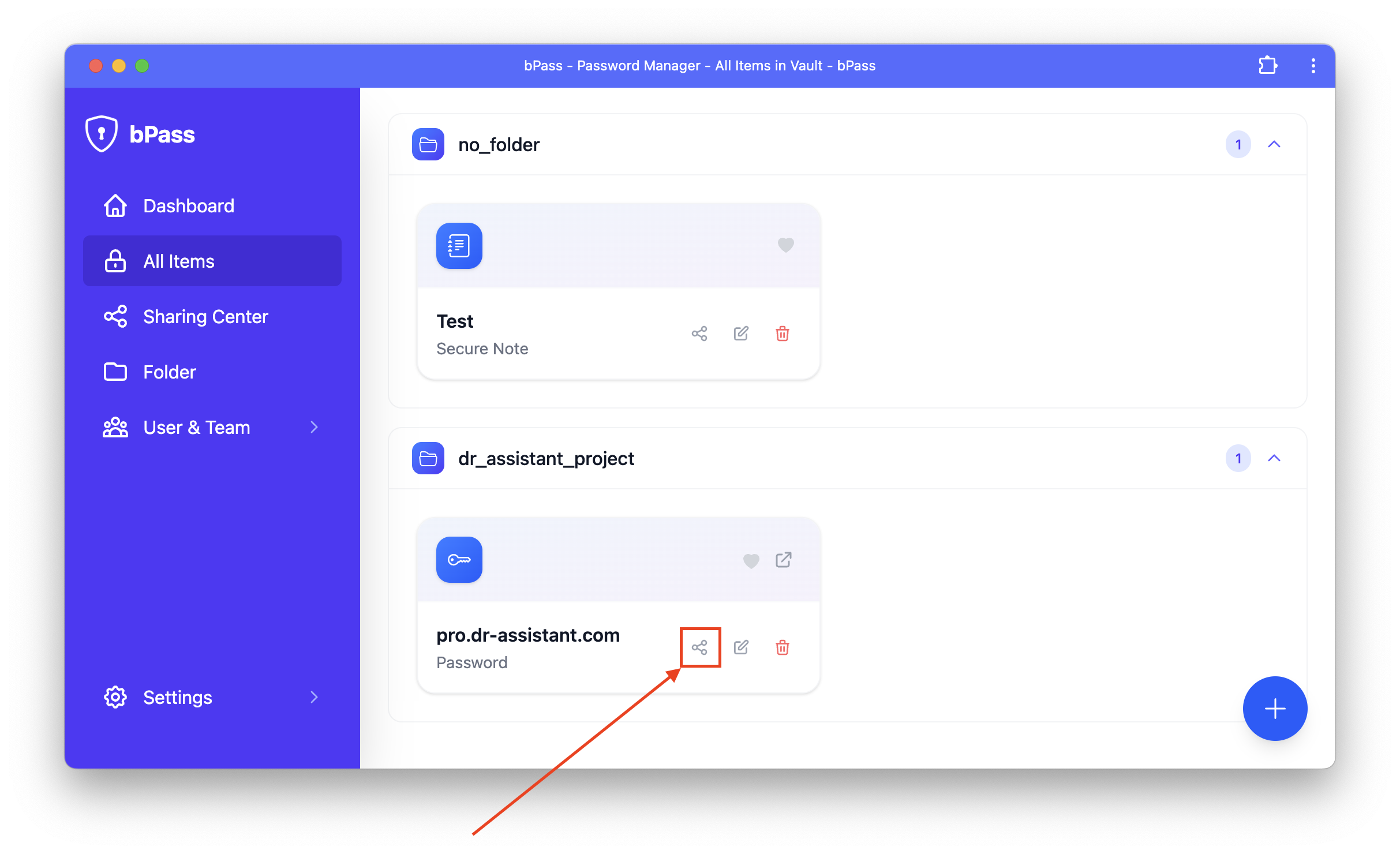 To share a vault entry with your team, start from the "All Items" view in your vault: