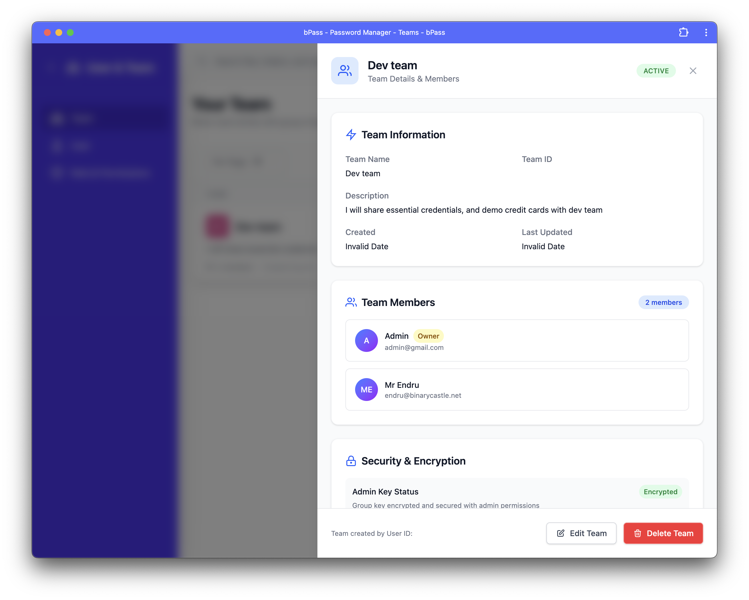 The Team Management feature in bPass allows you to create and manage teams to easily share password vault entries with groups of people. This comprehensive guide will help you understand how to effectively manage teams and collaborate securely with your colleagues.